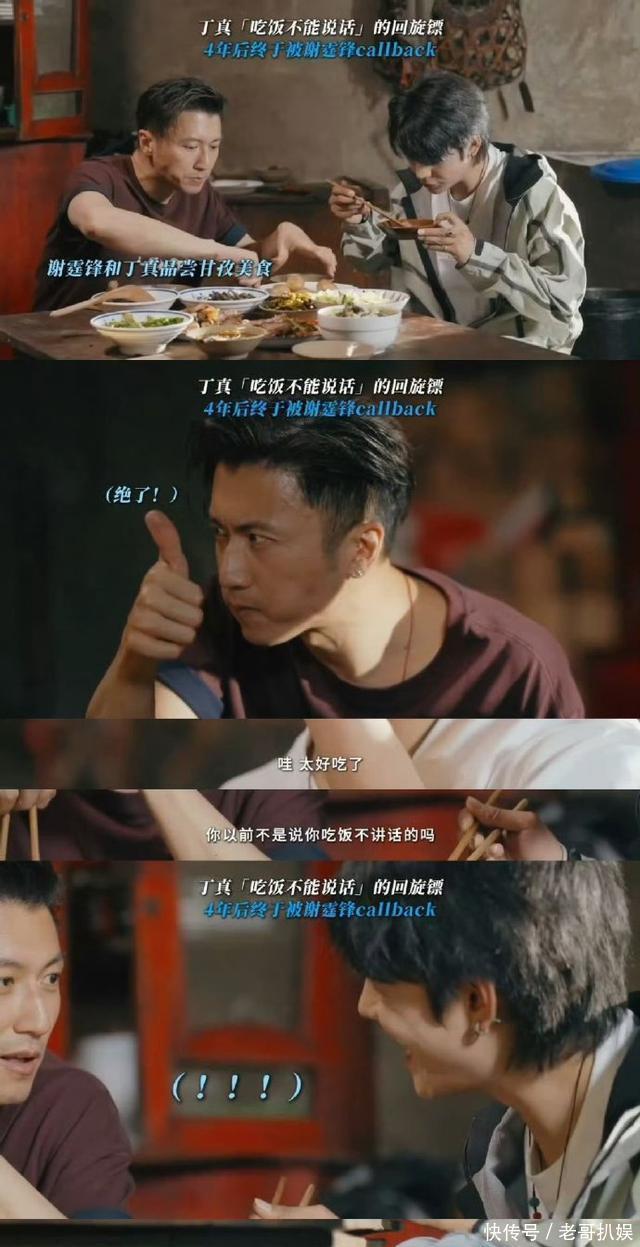时间倒回2021年,两人在综艺《百姓的味道》中初次同桌吃饭。当谢霆锋边吃边闲聊时,一旁的丁真突然认真解释道:“藏族吃饭习惯是不讲话。”这句耿直的回答瞬间让谢霆锋语塞,场面从温馨秒变尴尬又爆笑。网友当时纷纷刷屏:“综艺史上最猝不及防的文化碰撞!”“谢霆锋的表情仿佛在说:这话我没法接!” 2025年,两人在综艺《寻真之地》甘孜篇重聚。当丁真品尝当地美食,忍不住感叹“哇太好吃了”时,谢霆锋看准时机,冷不丁翻出旧账:“你以前不是说你吃饭不讲话的吗?”他还转身对着镜头“控诉”:“我跟他说藏族吃饭有什么习惯,他说我们吃饭不能讲话!”这一记“回旋镖”直接让丁真脸红到耳根,连忙解释:“这是老一辈的习俗啦!”并笑着找补:“因为我在做节目嘛……”谢霆锋则一脸得意地宣布:“四年了,终于复仇成功!”